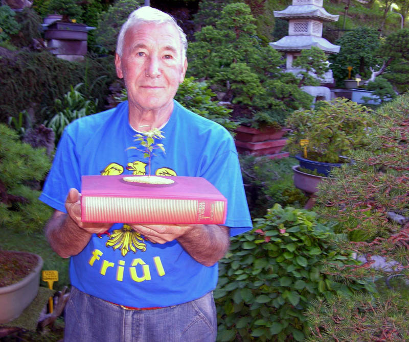 A primavera tagliò la radice principale, quella che usciva dalla pietra e si infilava nel terreno: contò 200 anelli. L’anziano amico continuò a crescere con vigore finché un giorno … È difficile da spiegare, sentii che ero l’albero e l’albero era me. Anche il vaso in ceramica del Patriarca ha una storia particolare: il maestro vasaio della famiglia imperiale giapponese, visto il bonsai, predisse alla pianta un grande avvenire e pose tre condizioni per la creazione del vaso: nessun limite di tempo, di spesa, e nessuna interferenza sulla scelta della forma e del colore. Selezionò le argille più rare, pensò alla forma e alle sfumature, e infine lo modellò; il tempo della cottura fu di una settimana, di un mese quello del raffreddamento con fuoco d’erba; la consegna avvenne dopo tre anni.