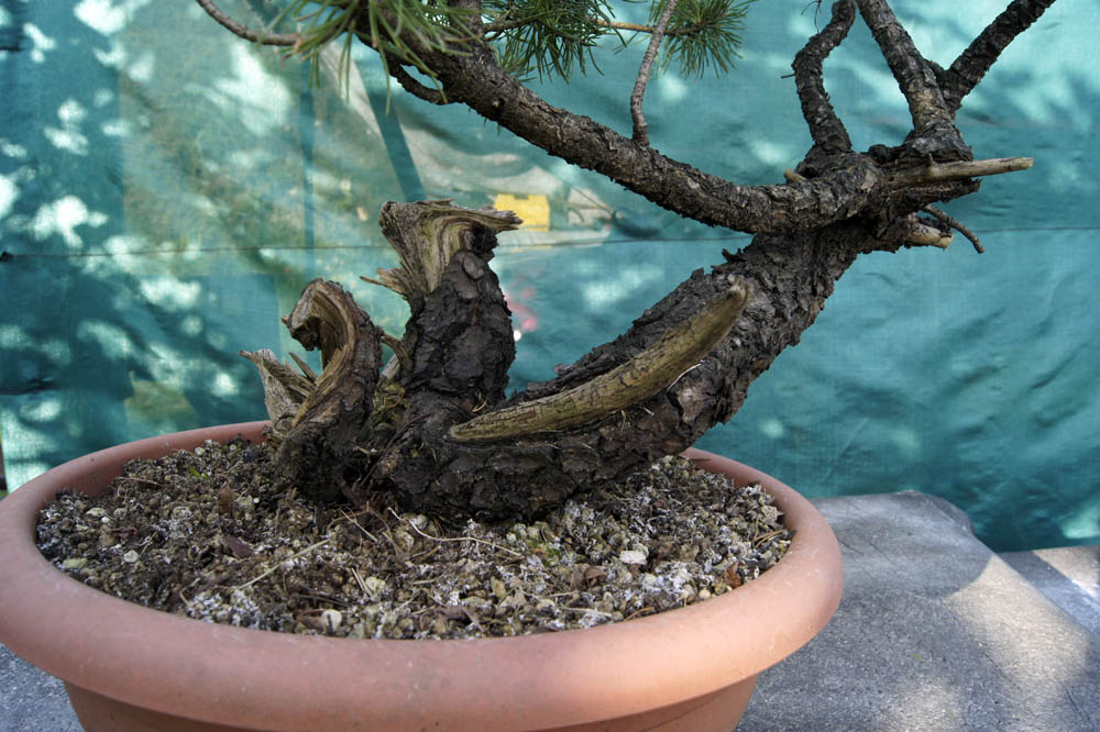 Come si noterà, la pianta presenta una base con dei residui di rami morti e parzialmente denudati creando un punto di forza primario ed un aspetto molto interessante. Non altrettanto si può dire dei quattro rami verticalizzati, lunghi e poco provvisti di vegetazione.